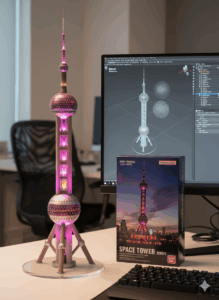 都市名から特徴を抽出して未来的な都市フィギュア画像生成プロンプト