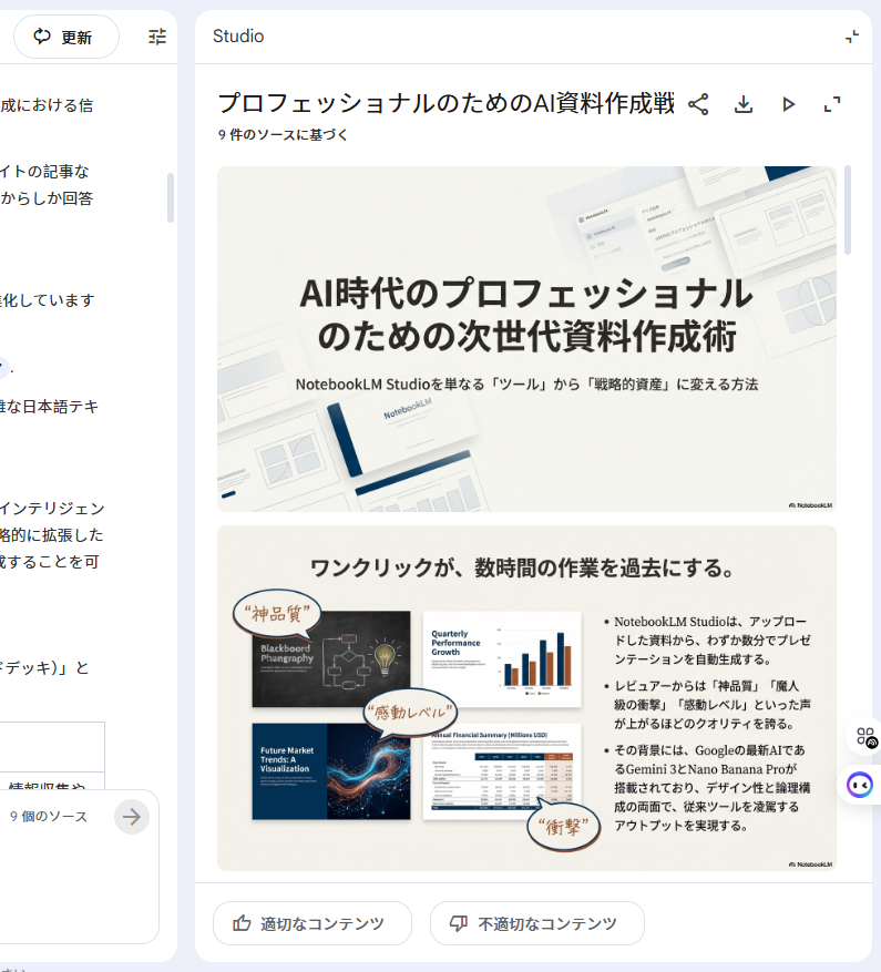 資料作成の常識が崩壊!NotebookLMの「スライド&図解生成」がプロの品質を実現!