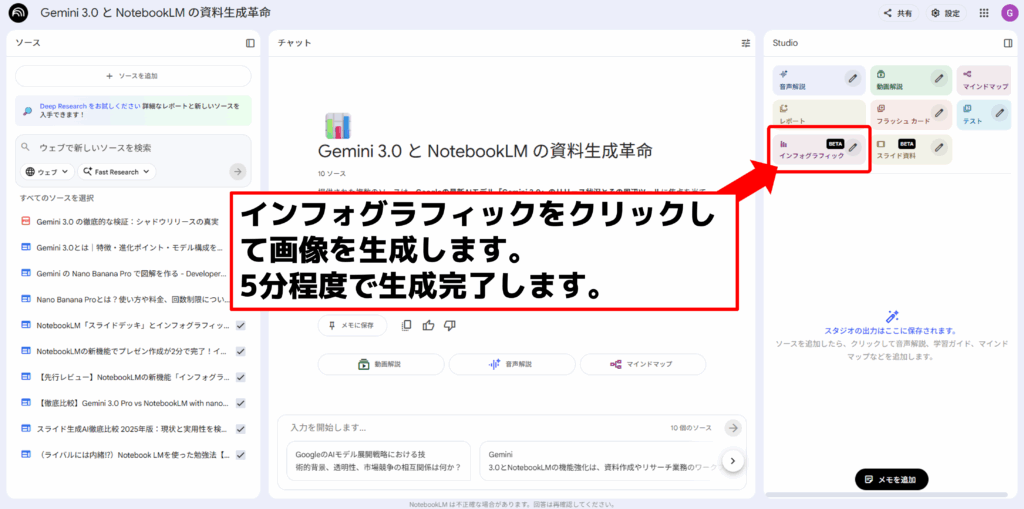 このNotebookLMが、最新のGemini 3とNano Banana Proを搭載したことで、その能力が飛躍的に向上しました。